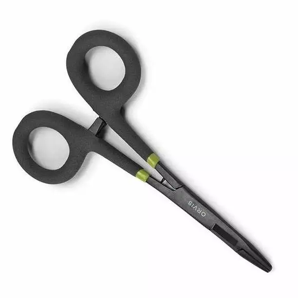 A strong pair of hemostatic forceps with built-in scissors for versatility, powered by Loon Outdoors. Matte black rust-resistant finish on surgical stainless steel. Double-dipped Comfy Grip handles offer a secure and comfortable grip even when wet. Locking handles with half smooth, half serrated jaw for positive grip. Hook-eye cleaner. Imported.