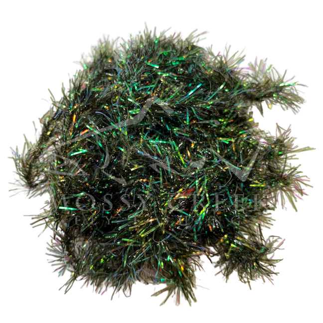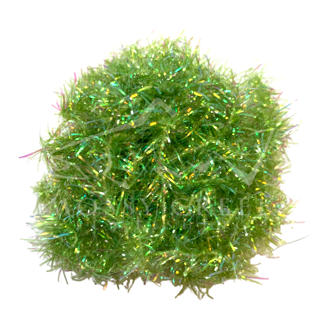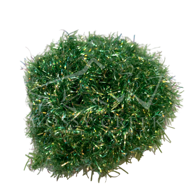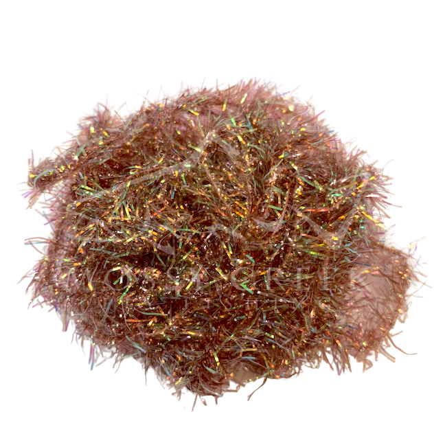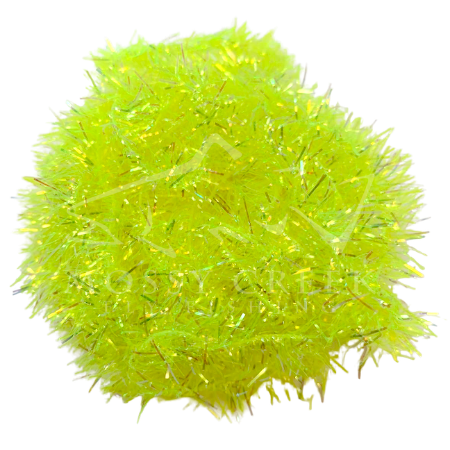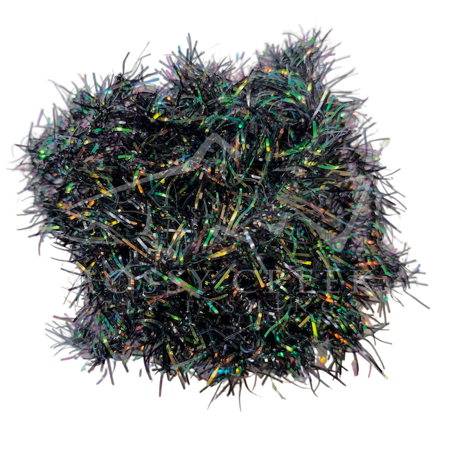 Opalescent Estaz in standard colors. Estaz is a twisted core wrapped mylar imported from Europe. It makes all sorts of patterns look better, like woolly bugger bodies. Used on the Golden Retreiver and Trow Minnow.