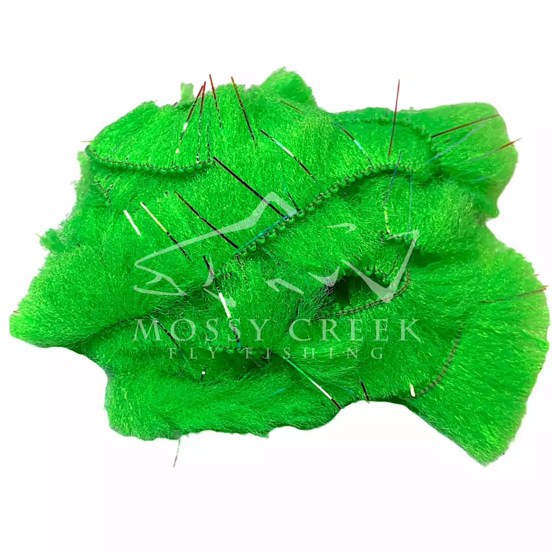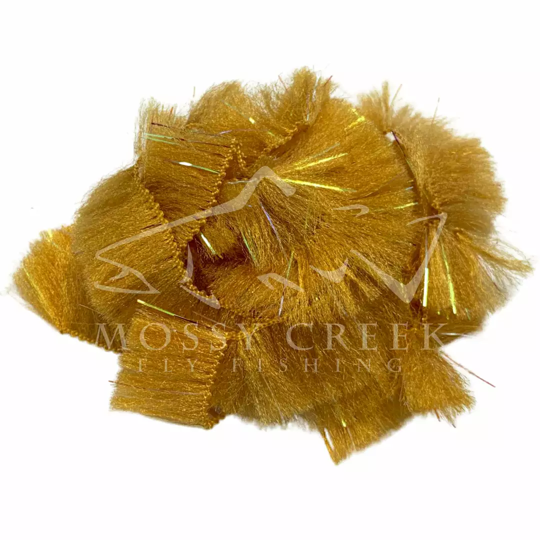 Fine translucent nylon yarn with filaments of mirror flash. Fast and easy for making full fur-like bodies. Simply wind onto the hook like hackle, comb, and trim to shape. Excellent for warmwater and saltwater applications. Made in USA.