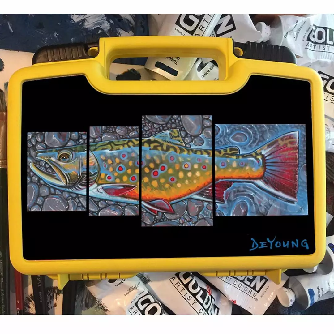 - Skinned with DeYoung Brook Trout artwork on both sides of the box! Water and Scratch Resistant material.
