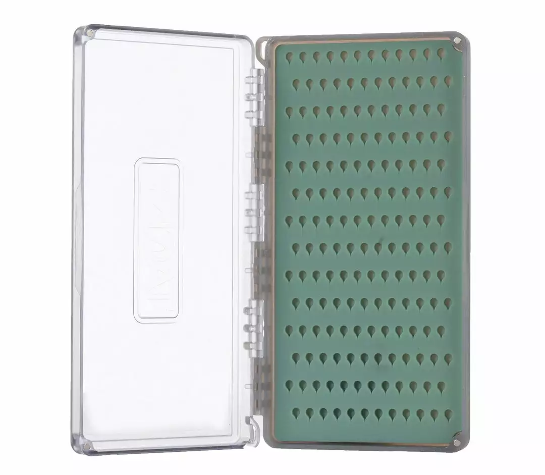 Our Original Box brings unmatched organization, visibility and reliability to your fly storage. The signature silicone anchoring pad holds flies tighter, doesn’t absorb water, withstands extreme temperature swings, and won’t get torn up by sharp hook points. New for 2020, the same, durable, shatter-resistant constructions gets an upgrade with recycled polycarbonate in our continued effort to reduce our footprint.