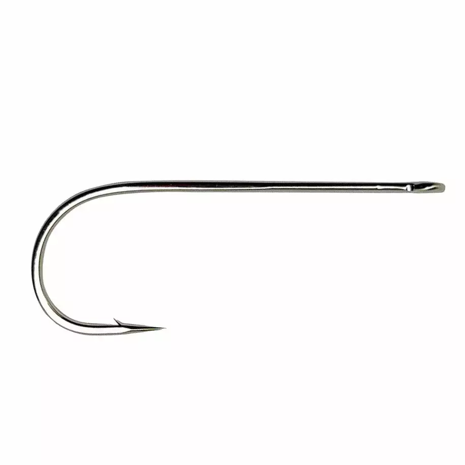 Gamakatsu Spinner Bait Hook. Fly tying starts with quality hooks. Gamakatsu makes the best hooks available. So what is a fly shop doing with a spinner bait hook? Well, this model perfect bend hook is built insanely strong to withstand insane abuse from the conventional world of bass fishing. This hook is a favorite for fly tiers as it has a couple of unique and beneficial features. It has a long straight shank, large gape, and an enlarged eye. The large eye is designed to go over a hook on a spinnerbait lure. The point is super sharp but also super hard. You can run this into rock after rock and still get the penetration you need on big fish. This is our favorite hook for tying musky, pike, and predator flies. The extra large eye gives your fly more movement and swing when tied on with a loop knot.