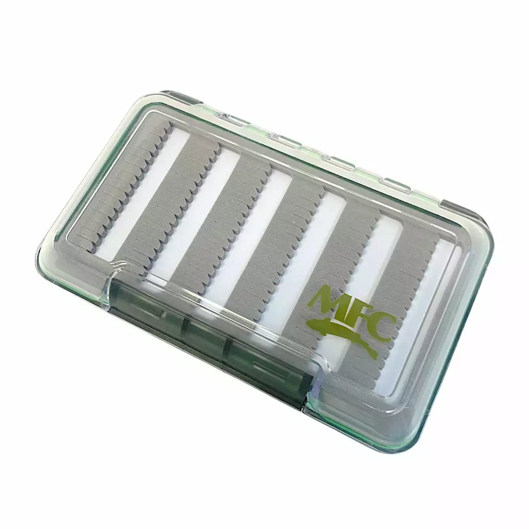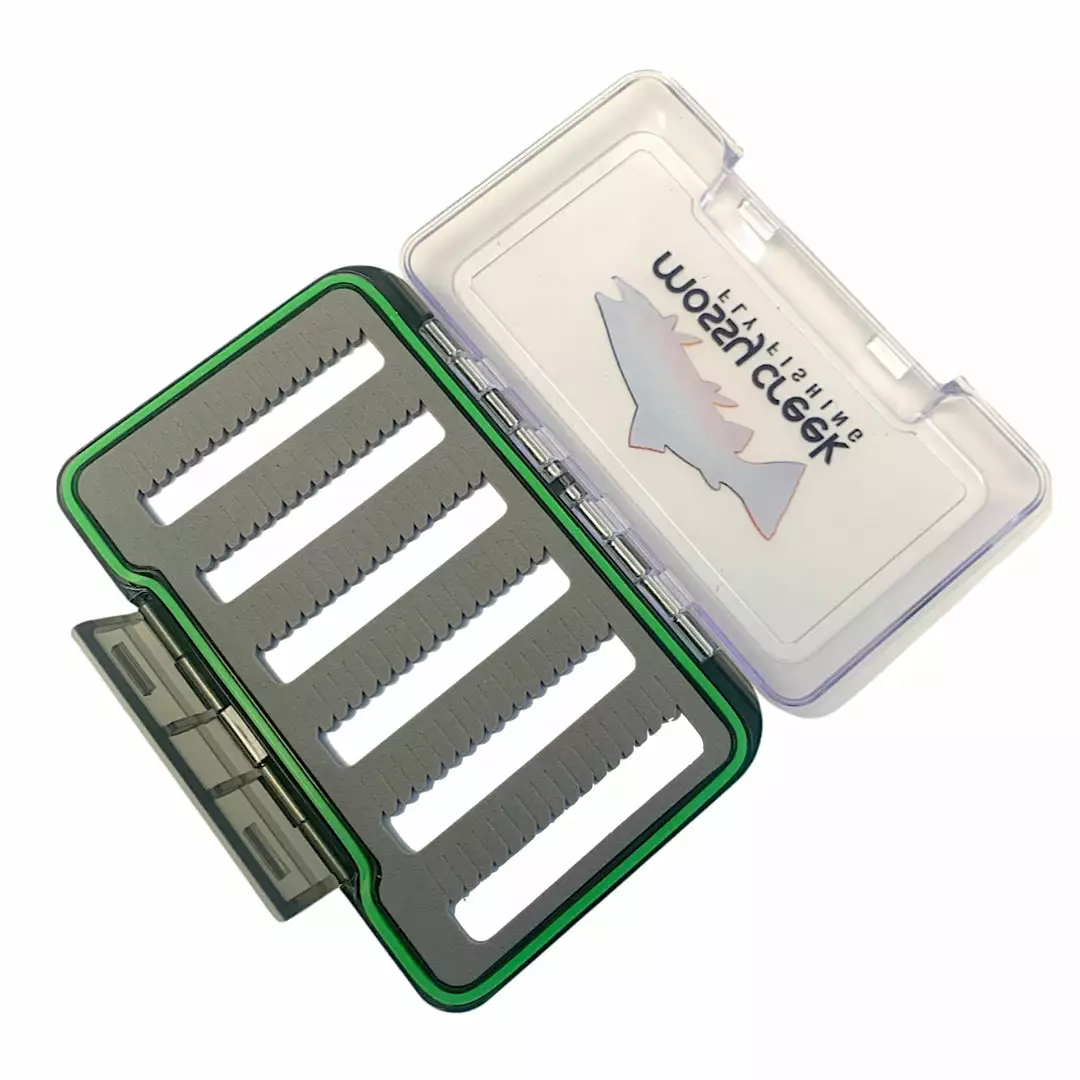 Mossy Creek Waterproof Fly Box from MFCÂ are durable and help to ensure that your flies stay bone dry, whether your fishing during a deluge or happen to drop your box right into the drink. The slotted foam inserts will hold flies well and the box provides plenty of clearance for dry flies and parachute posts. 216 slots for flies. Let your flies ride in style in our new waterproof boxes!