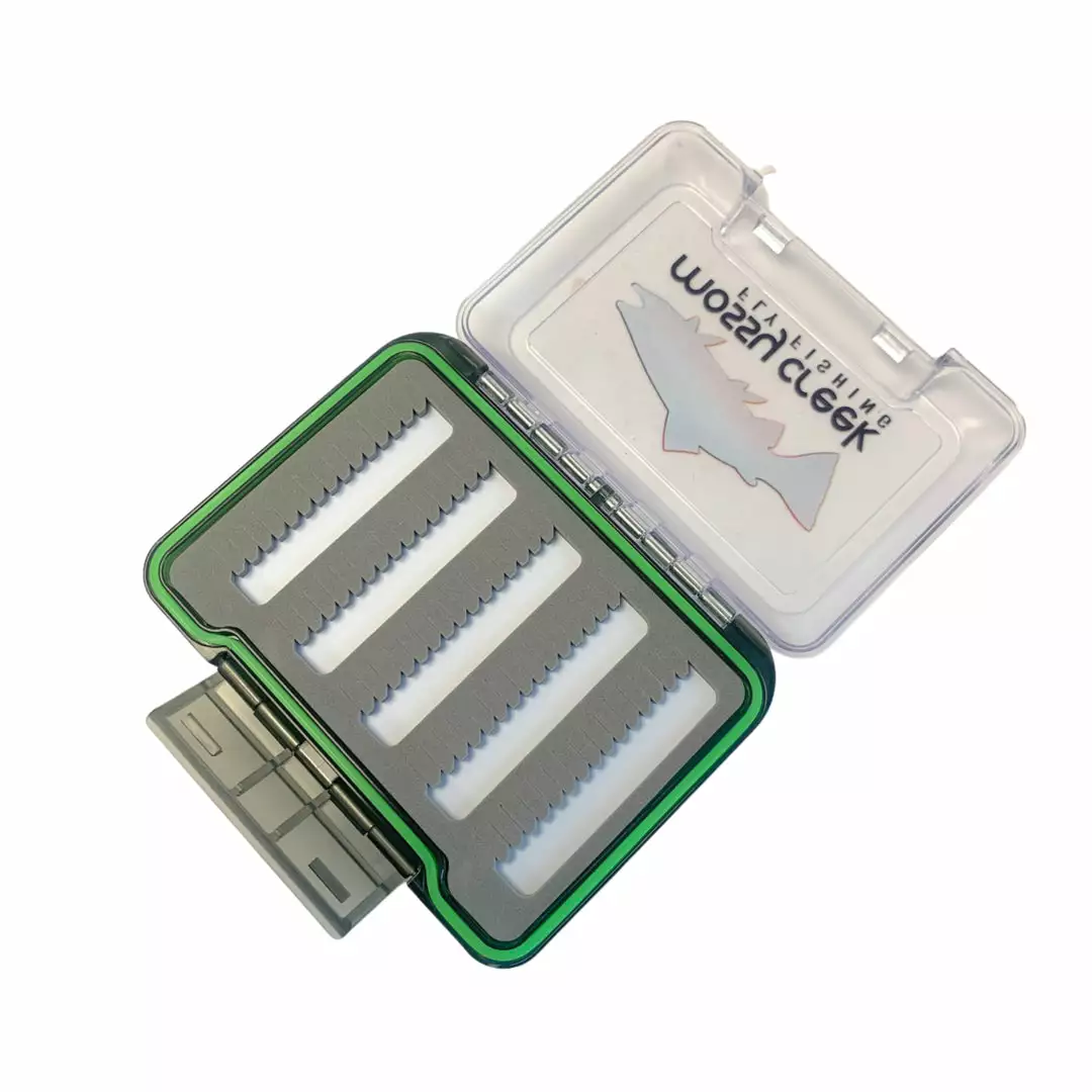 Mossy Creek Waterproof Fly Box from MFC are durable and help to ensure that your flies stay bone dry, whether your fishing during a deluge or happen to drop your box right into the drink. The slotted foam inserts will hold flies well and the box provides plenty of clearance for dry flies and parachute posts. 160 slots for flies. Let your flies ride in style in our new waterproof boxes!