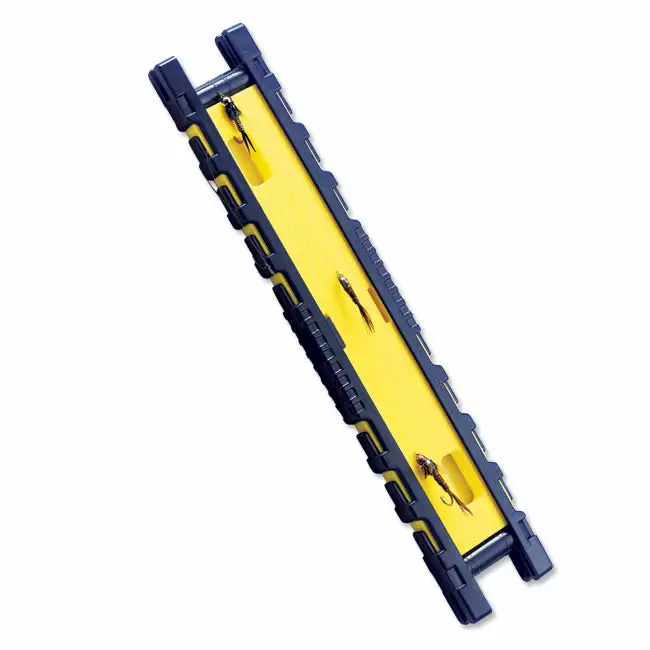 Don’t waste time tying dropper rigs on stream. This ingenious fly box stores multiple pre-tied dropper rigs until you need them. It’s also an easy way to save old fly fishing leaders for reuse or proper disposal. Fly box has five removable inserts, each of which can hold multiple rigs. Foam inserts for the barb, notches on the side secure the tippet. Fly box measures 4″ x 7¼” x 1¼”. Flies not included. Imported.