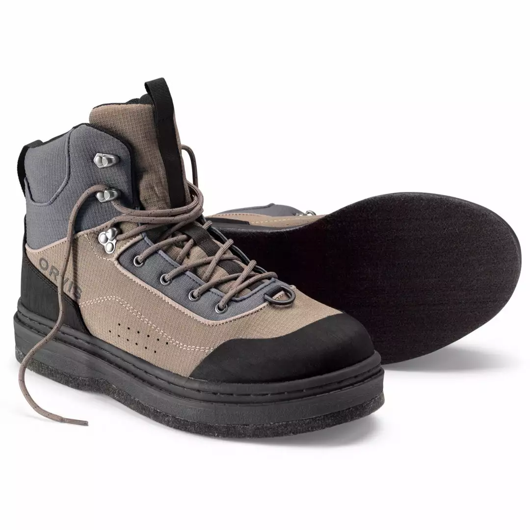 An entry-level boot doesn’t mean compromise: Our lightweight felt sole Encounter Wading Boots feature ripstop uppers for excellent weight savings without sacrificing durability with an increased interior volume that allows for a wider, comfortable fit. An EVA midsole provides supportive comfort and excellent stability so you can step with confidence while the padded collar offers ankle support and the toe and heel caps offer protection from abrasion and impacts. 10mm felt outsole. In sandstone.