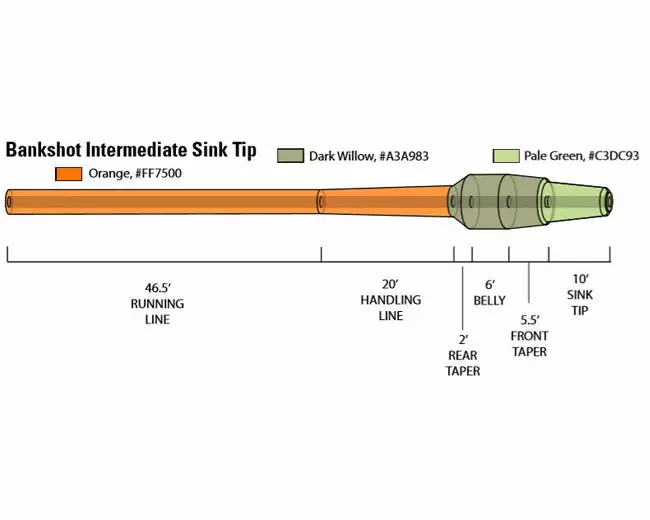 Hydros Bank Shot Intermediate is designed to be a versatile, quick-shooting fly line to handle a multitude of situations. Great for one time casts to a bank, delivering large flies, roll casts, and single hand Spey. This line is powerfully built with a short, heavy head with 8′ intermediate tip with a 1.5 ips sink rate. Loads the rod quickly and reduces the need for false casts. Smooth coated line with AST patented dry-slick technology provides continual line protection and slickness. Dual welded loops for easy, seamless connection to backing and leader. Orvis Line ID for quick and easy identification. Color change at 30′. Pale green sink. Dark willow tip. Orange line. 90′ total length. Line weights 5-11. Made in USA.