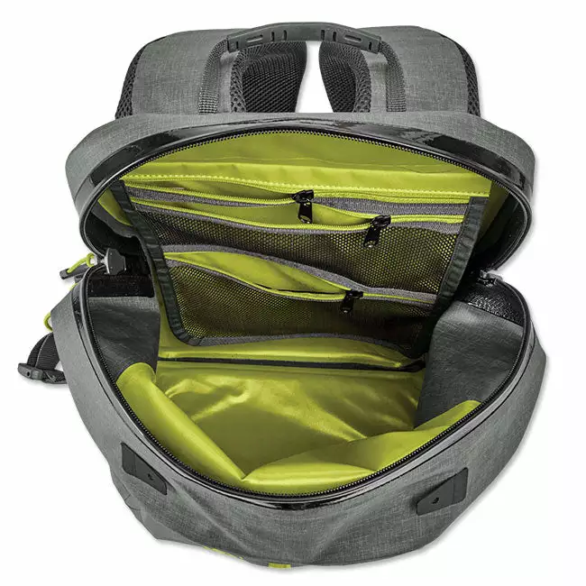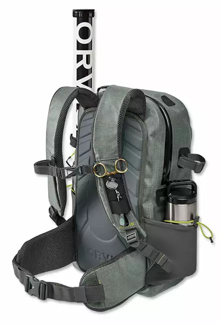 Our improved Orvis waterproof nylon backpack protects your gear in any conditions.