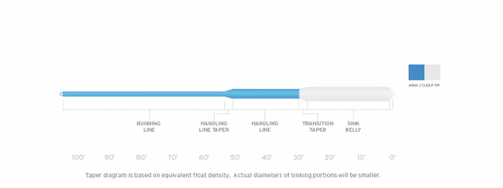 - 30’ intermediate low-visibility sinking head with handling line for better casting and control