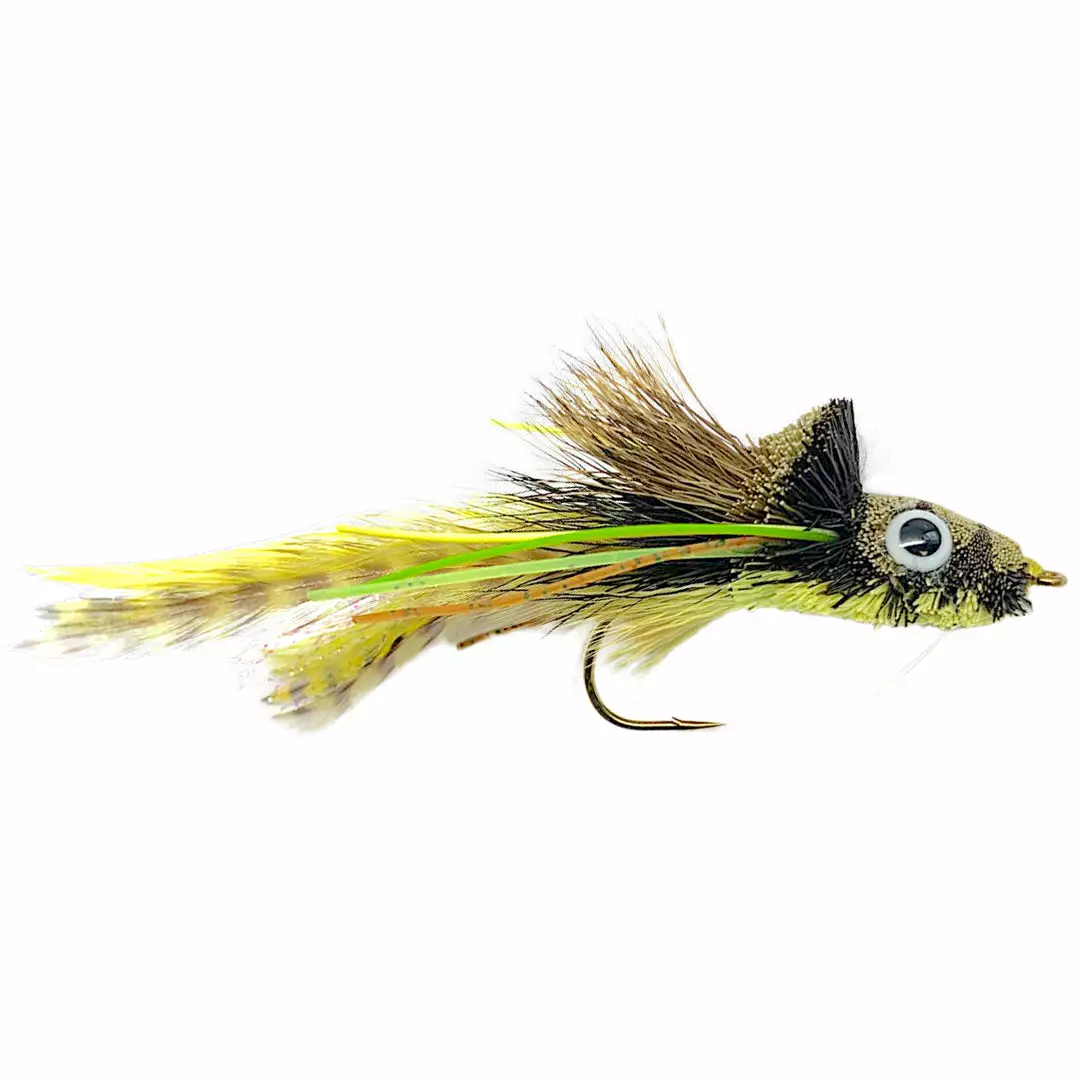 Umpqua Swimming Frog is a great topwater fly that dives and swims just like the real thing! Great for Bass and other warm water predators. One of our favorite flies to fish through the warm season.Â
